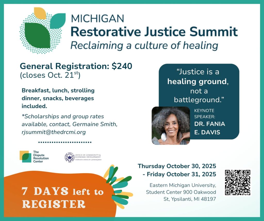 Join Voting Access for All Coalition as we attend the Michigan Restorative Justice Summit, a two-day gathering dedicated to transforming harm into healing and reimagining accountability through community-driven solutions.